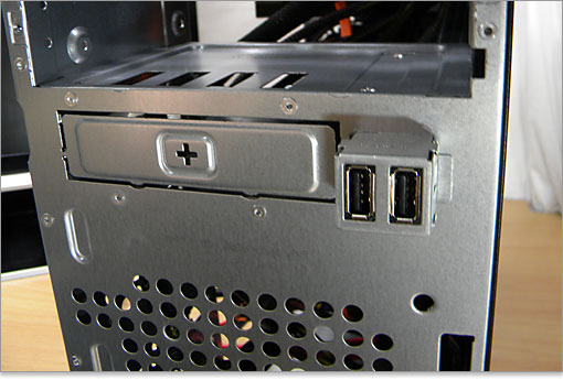 内部3.5インチベイとUSB端子2つ。