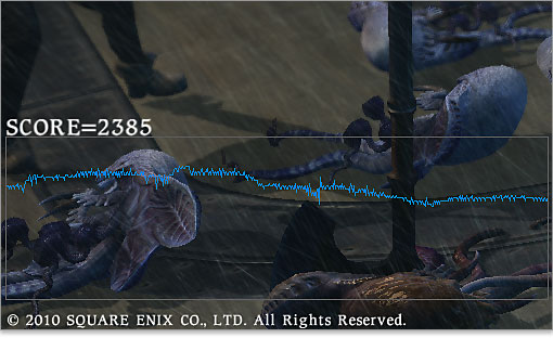 ベンチマークのシーンは、ファイナルファンタジーXIVのプロローグあたり。嵐の中、船上でのバトルシーンです。