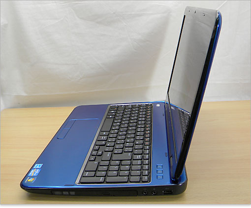 Inspiron 15R(N5110)の右側面を詳しく見ていきます。Inspiron 15R(N5110)では「USB2.0端子2つ、USB3.0端子2つ」を装備していますが、右側面にはUSB3.0端子を1つ装備しています。2011年5月にレビュー。最新情報はDELLサイトにて。