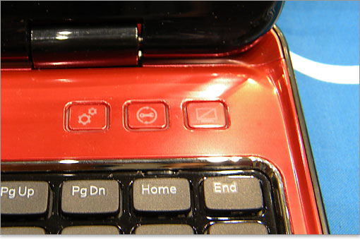 3つの機能ボタン。左から「Windowsモビリティセンター、DELLサポートセンター、ディスプレイON/OFF」のボタンです。