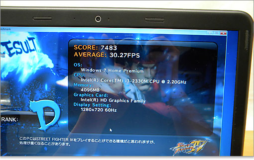 今回のInspiron 13z(N311z)の構成で、ストリートファイター4ではRANK D。メインストリームクラスの単体GPUを搭載していないので、本格的なゲーム用には無理があります。やはりXPS 15、17のようなミドルノートとはグラフィック性能に差があります。