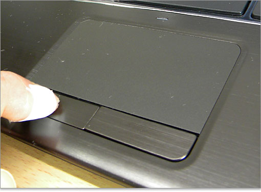 クリックボタンまで金属表面。押しごたえは良好。操作エリアは金属ではなく、素材が代わっています。DELLノートのなかには、金属のパームレストをプレスして「パームレストとタッチパッドエリアが一枚板」になっているものもありますが、パソ兄さんはこのように素材を分けてくれたほうが好みです。