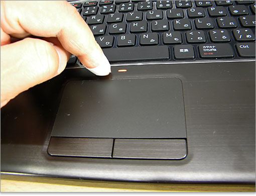タッチパッドを使わないユーザーは、機能をオフにできます。オフのときはオレンジ色で点灯するので一目瞭然。タッチパッド機能オンの時は消灯しています。