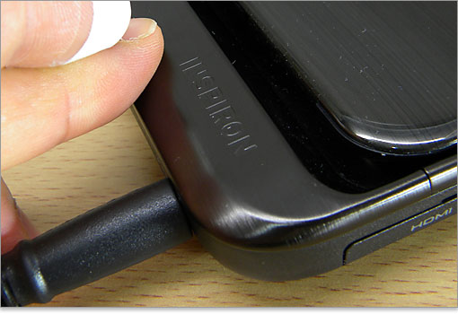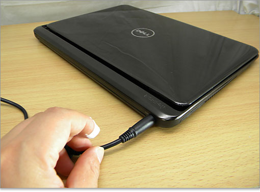 ACアダプタのコネクタをInspiron 13z(N311z)の電源コネクタに接続した様子。