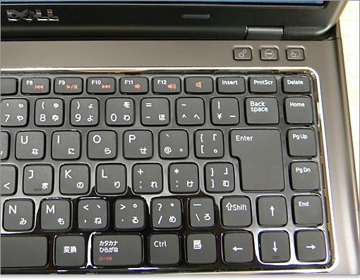 キー同士の間隔がはっきりしているので、誤操作しにくい構造です。そして、どうやらInspiron 13z(N311z)と同じ型のキーボードパーツを採用しているようです。