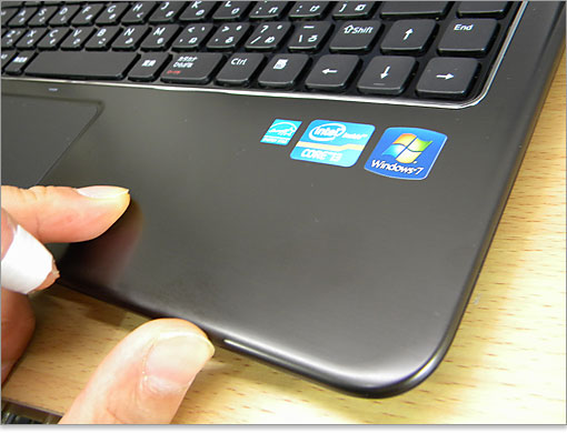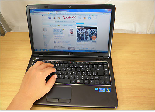 14インチなので、13.3インチのInspiron 13z(N311z)よりもキーボード左右の面積が広くなります。ただ、その分だけパームレストの面積が広々とします。