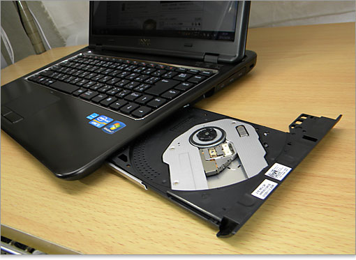 光学ドライブを引き出したときのInspiron 14z(N411z)全体像。