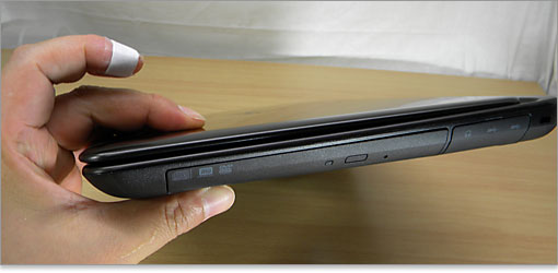 光学ドライブを搭載しているとは、思えない薄さ。