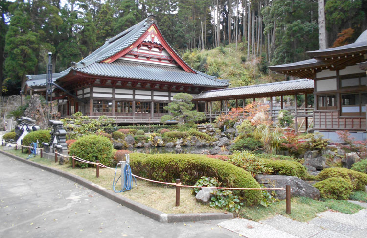 最福寺は上総十ヶ寺の一つで、徳川幕府から三十石の寺領を受けている御朱印寺である。本堂はもともと八鶴湖畔にあったが、1703~1709年に現在の位置に移築。その時、本堂に使われた丸柱40本は浅草寺から譲り受けた古材と伝わる。明治42年に萱葺から瓦葺に替え、平成5年に銅葺屋根に替えられた。
