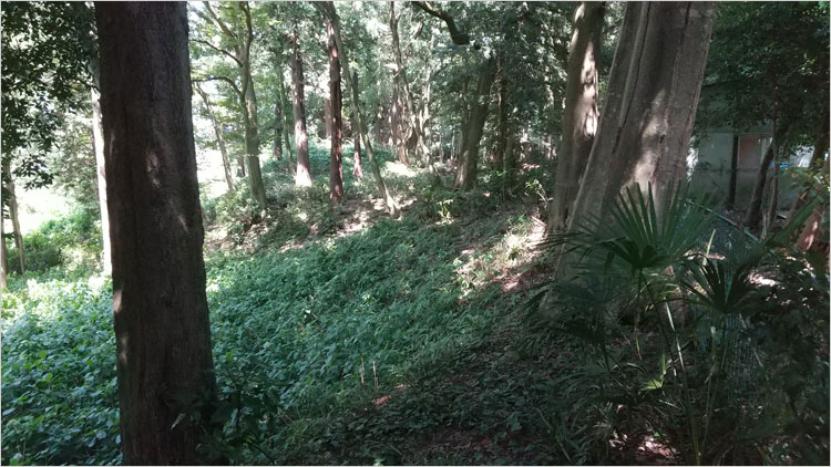 大手からさらに南は低地の丘陵地になっているが、ここは城郭として成り立っていないと思われる。