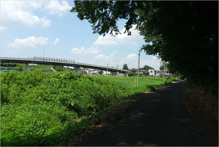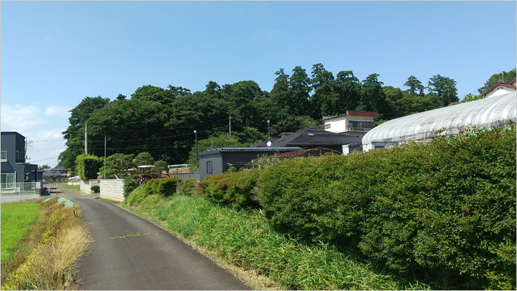 大宝城から北の方角を眺めると233号線が見える。このまま北に大宝沼が広がり関城につながっていたようだ。
