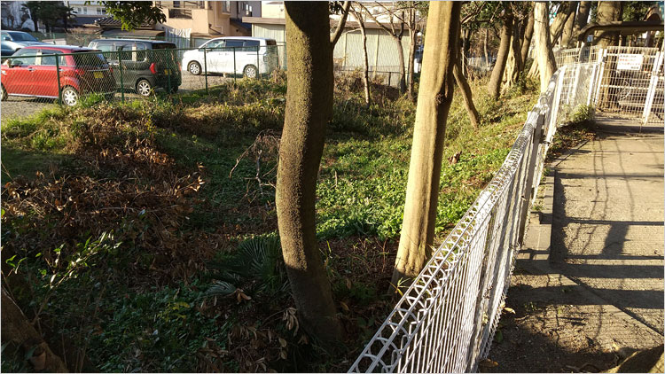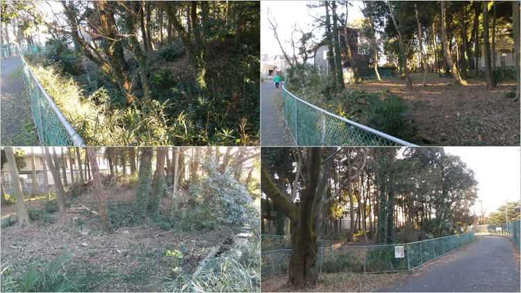 甘棠院史跡公園の東側に抜ける細道の北側。おそらく二の曲輪だろう。