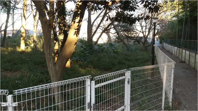 甘棠院史跡公園の南方面は、甘棠院の竹藪で中を窺い知ることができない。
