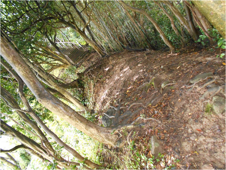 石段が見えてきたら、この先、心臓破りな急階段が延々と続く。