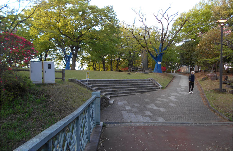 佐野駅と陸橋でつながっているのが三の丸跡。駅方面(南向き)のベンチがある先端部分に井戸があったという。地表下1.5mの深さから石組みの井戸跡が発見され内径1mほど。保存のため埋戻したので詳細は不明とのこと。