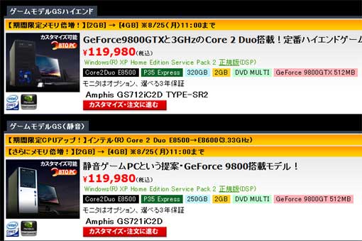 パソコン工房のゲームPCには、「GSスペシャル」「GSハイエンド」「GSスタンダード」の3グレードあり、リネージュII、モンスターハンター、ファイナルファンタジーXlなど数々のゲーム推奨モデルが揃います。