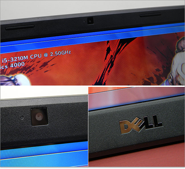 ディスプレイベゼルの上部に100万画素Webカメラを内蔵。ベゼル下部にはメッキ加工されたDELLロゴ。