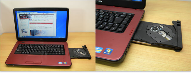 トレイ式の光学ドライブです。2012年8月レビュー時点ではBDのカスタマイズはないようです。