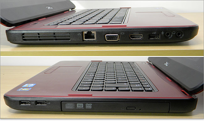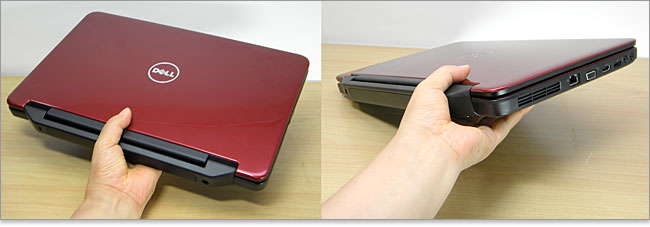 2012年8月レビュー時点では、オブシディアンブラックおよび、アップルレッドの天板カラーがラインナップされています。中央のDELLロゴはメッキ加工がされています。