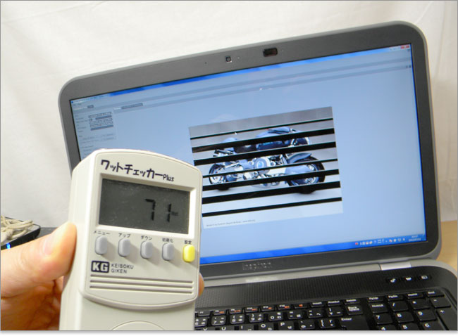 CINEBENCH R10のベンチマーク測定中は、極端な変動があるものの71W前後の消費電力でした。