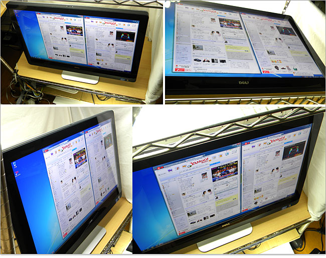 前頁で説明した通り、XPS One 27は27インチワイド(アスペクト比16:9)という大画面で、クアッドHD解像度(2560×1440)のディスプレイです。ここではその様子を詳しくチェックしていきます。