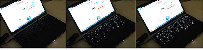 解像度は15インチタイプで一般的な1366x768。13.3インチのXPS 13 Ultrabookからするとやや高解像度というところでしょうか。フルHD解像度のニーズがあるかもしれませんが、仮に選択肢にあったとしても、そんな目潰し解像度は私は選びません。拡大表示したらボヤけますし。やはり1366x768が無難なところです。